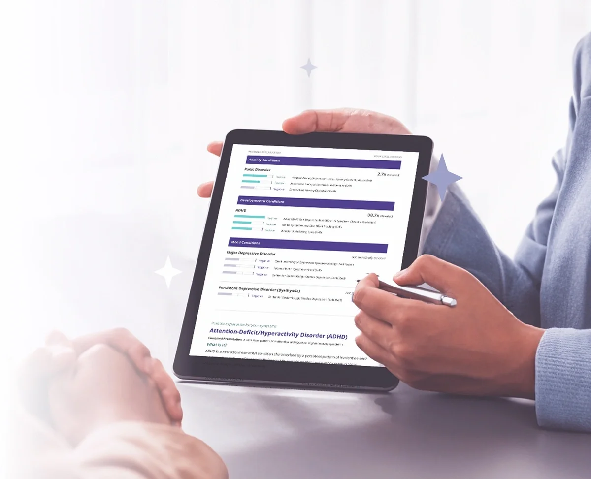 Struggling to find answers to your own mental health concerns? Get a comprehensive mental health assessment and actionable report to share with any healthcare provider.