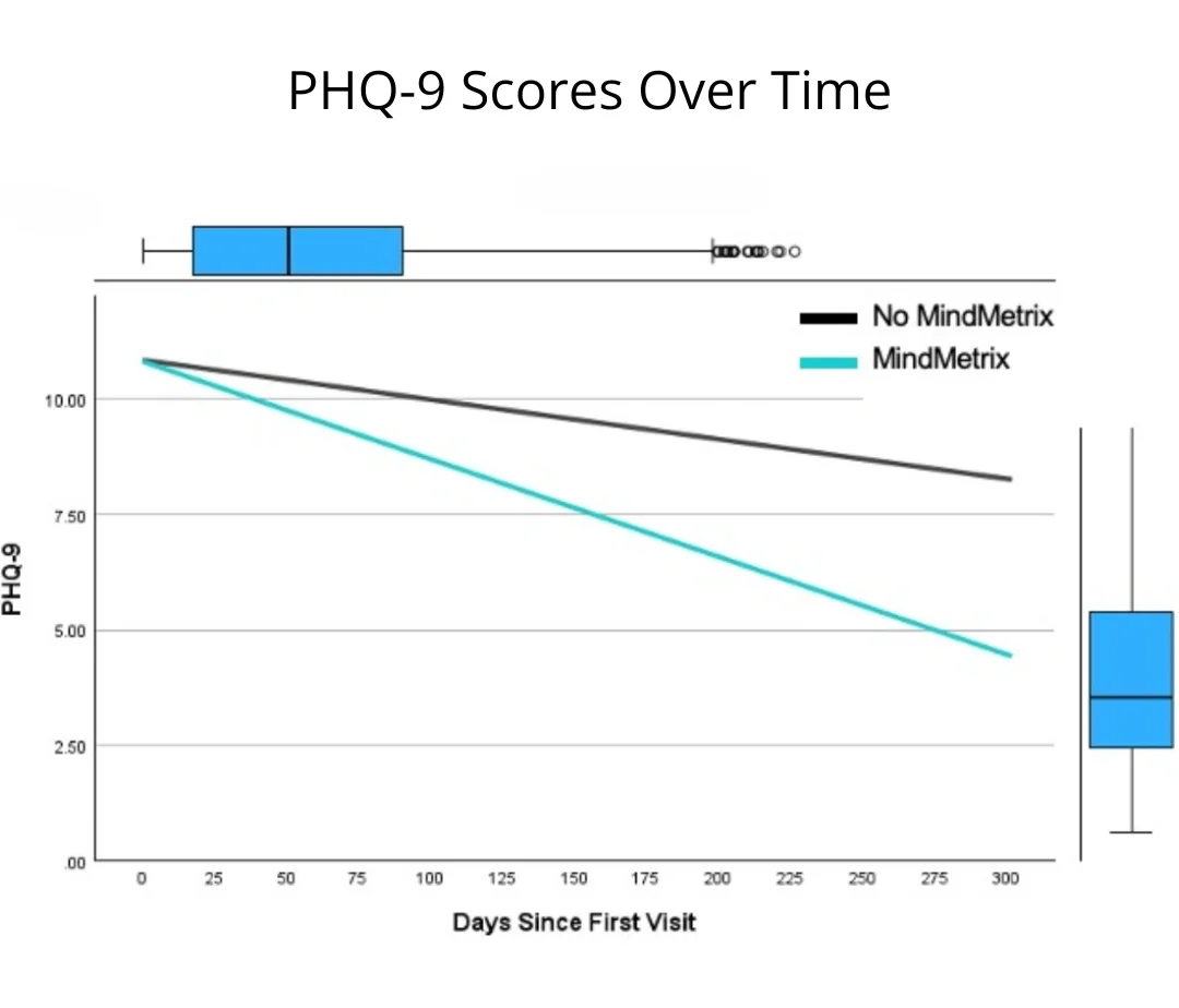 To evaluate real-world impact, a retrospective longitudinal study examined whether including MindMetrix at intake influences symptom trajectories over time.